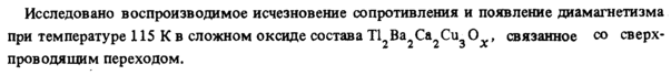 Исследовано воспроизводимое исчезновение сопротивления и появление диамагнетизма при температуре 115 К в сложном оксиде состава ^2^2^&2^из^х' связанное со сверхпроводящим переходом.