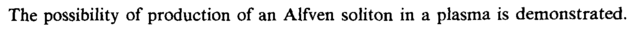 The possibility of production of an Alfven soliton in a plasma is demonstrated.