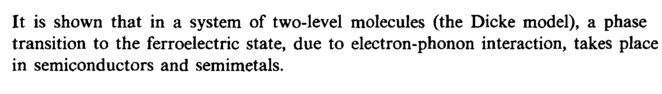 It is shown that in a system of two-level molecules (the Dicke model), a phase transition to the ferroelectric state, due to electron-phonon interaction, takes place in semiconductors and semimetals.