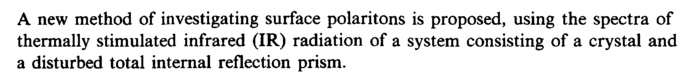 A new method of investigating surface polaritons is proposed, using the spectra of thermally stimulated infrared (IR) radiation of a system consisting of a crystal and a disturbed total internal reflection prism.