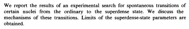 We report the results of an experimental search for spontaneous transitions of certain nuclei from the ordinary to the superdense state. We discuss the mechanisms of these transitions. Limits of the superdense-state parameters are obtained.