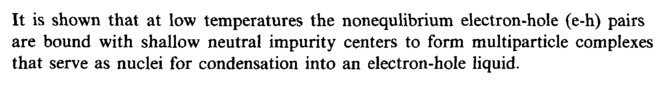 It is shown that at low temperatures the nonequlibrium electron-hole (e-h) pairs are bound with shallow neutral impurity centers to form multiparticle complexes that serve as nuclei for condensation into an electron-hole liquid.