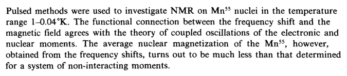 Pulsed methods were used to investigate NMR on Mn55 nuclei in the temperature range 1-0.04 °K. The functional connection between the frequency shift and the magnetic field agrees with the theory of coupled oscillations of the electronic and nuclear moments. The average nuclear magnetization of the Mn55, however, obtained from the frequency shifts, turns out to be much less than that determined for a system of non-interacting moments.