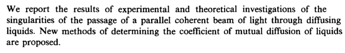 We report the results of experimental and theoretical investigations of the singularities of the passage of a parallel coherent beam of light through diffusing liquids. New methods of determining the coefficient of mutual diffusion of liquids are proposed.