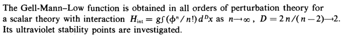 The Gell-Mann-Low function is obtained in all orders of perturbation theory for a scalar theory with interaction Hini = g${§n/ntydDx η—>oo , D = 2n/(n~2)-Its ultraviolet stability points are investigated.