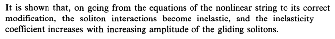 It is shown that, on going from the equations of the nonlinear string to its correct modification, the soliton interactions become inelastic, and the inelasticity coefficient increases with increasing amplitude of the gliding solitons.