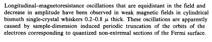 Longitudinal-magnetoresistance oscillations that are equidistant in the field and decrease in amplitude have been observed in weak magnetic fields in cylindrical bismuth single-crystal whiskers 0.2-0.8 μ thick. These oscillations are apparently caused by sample-dimension induced periodic truncation of the orbits of the electrons corresponding to quantized non-extremal sections of the Fermi surface.