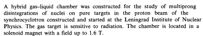 A hybrid gas-liquid chamber was constructed for the study of multiprong disintegrations of nuclei on pure targets in the proton beam of the synchrocyclotron constructed and started at the Leningrad Institute of Nuclear Physics. The gas target is sensitive to radiation. The chamber is located in a solenoid magnet with a field up to 1.6 T.