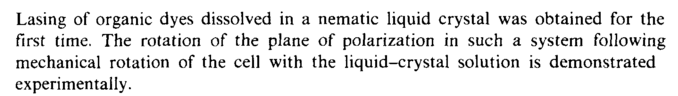 Lasing of organic dyes dissolved in a nematic liquid crystal was obtained for the first time. The rotation of the plane of polarization in such a system following mechanical rotation of the cell with the liquid-crystal solution is demonstrated experimentally.
