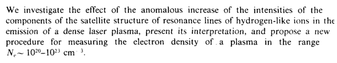 We investigate the effect of the anomalous increase of the intensities of the components of the satellite structure of resonance lines of hydrogen-like ions in the emission of a dense laser plasma, present its interpretation, and propose a new procedure for measuring the electron density of a plasma in the range ЛГ„~ 1020-1021 cm I