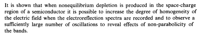 It is shown that when nonequilibrium depletion is produced in the space-charge region of a semiconductor it is possible to increase the degree of homogeneity of the electric field when the electroreflection spectra are recorded and to observe a sufficiently large number of oscillations to reveal effects of non-parabolicity of the bands.