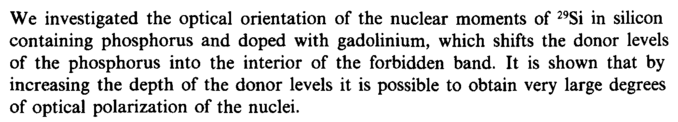 We investigated the optical orientation of the nuclear moments of 29Si in silicon containing phosphorus and doped with gadolinium, which shifts the donor levels of the phosphorus into the interior of the forbidden band. It is shown that by increasing the depth of the donor levels it is possible to obtain very large degrees of optical polarization of the nuclei.