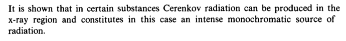 It is shown that in certain substances Cerenkov radiation can be produced in the x-ray region and constitutes in this case an intense monochromatic source of radiation.