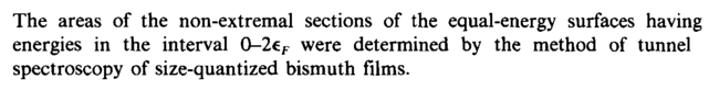 The areas of the non-extremal sections of the equal-energy surfaces having energies in the interval 0-2cF were determined by the method of tunnel spectroscopy of size-quantized bismuth films.