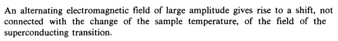 An alternating electromagnetic field of large amplitude gives rise to a shift, not connected with the change of the sample temperature, of the field of the superconducting transition.
