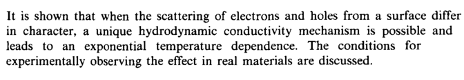 It is shown that when the scattering of electrons and holes from a surface differ in character, a unique hydrodynamic conductivity mechanism is possible and leads to an exponential temperature dependence. The conditions for experimentally observing the effect in real materials are discussed.