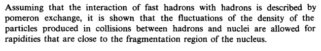 Assuming that the interaction of fast hadrons with hadrons is described by pomeron exchange, it is shown that the fluctuations of the density of the particles produced in collisions between hadrons and nuclei are allowed for rapidities that are close to the fragmentation region of the nucleus.