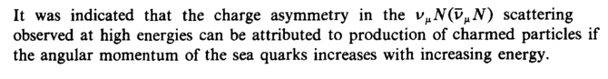 It was indicated that the charge asymmetry in the νμΝ(νμΝ) scattering observed at high energies can be attributed to production of charmed particles if the angular momentum of the sea quarks increases with increasing energy.