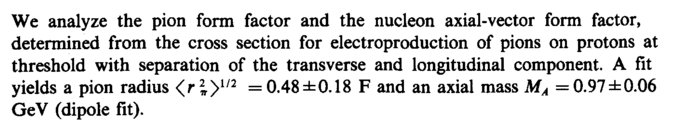 We analyze the pion form factor and the nucleon axial-vector form factor, determined from the cross section for electroproduction of pions on protons at threshold with separation of the transverse and longitudinal component. A fit yields a pion radius <ri>1/2 =0.48±0.18 F and an axial mass MA =0.97±0.06 GeV (dipole fit).