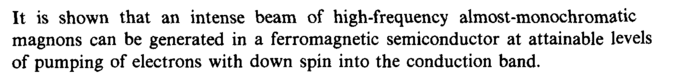 It is shown that an intense beam of high-frequency almost-monochromatic magnons can be generated in a ferromagnetic semiconductor at attainable levels of pumping of electrons with down spin into the conduction band.
