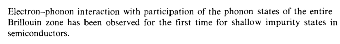Electron-phonon interaction with participation of the phonon states of the entire Brillouin zone has been observed for the first time for shallow impurity states in semiconductors.
