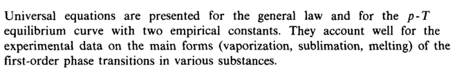 Universal equations are presented for the general law and for the p-T equilibrium curve with two empirical constants. They account well for the experimental data on the main forms (vaporization, sublimation, melting) of the first-order phase transitions in various substances.