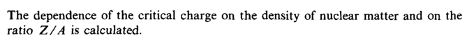 The dependence of the critical charge on the density of nuclear matter and on the ratio