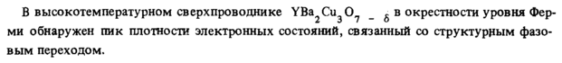 В высокотемпературном сверхпроводнике YBa Си О Л в окрестности уровня Фер-ми обнаружен пик плотности электронных состояний, связанный со структурным фазовым переходом.