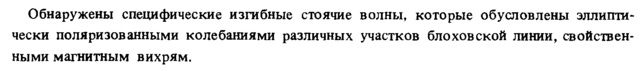 Обнаружены специфические изгибные стоячие волны, которые обусловлены эллиптически поляризованными колебаниями различных участков блоховской линии, свойственными магнитным вихрям.