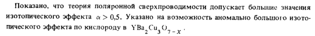 Показано, что теория поляронной сверхпроводимости допускает большие значения изотопического эффекта а. > 0,5. Указано на возможность аномально большою изотопического эффекта по кислороду в YBa Си О