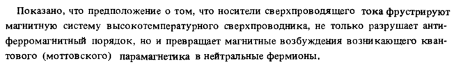 Показано, что предположение о том, что носители сверхпроводящего тока фрустрируют магнитную систему высокотемпературного сверхпроводника, не только разрушает анти-ферромагнитный порядок, но и превращает магнитные возбуждения возникающего квантового (моттовского) парамагнетика в нейтральные фермионы,