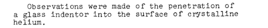 Observations were made of the penetration of a glass indentor into the surface of crystalline helium.