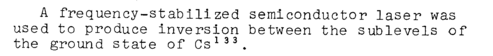 A frequency-stabilized semiconductor laser was used to produce inversion between the sublevels of the ground state of Cs133.