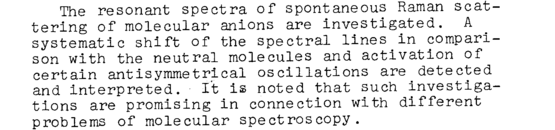 The resonant spectra of spontaneous Raman scattering of molecular anions are investigated. A systematic shift of the spectral lines in comparison with the neutral molecules and activation of certain antisymmetrical oscillations are detected and interpreted. It is noted that such investigations are promising in connection with different problems of molecular spectroscopy.