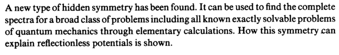 A new type of hidden symmetry has been found. It can be used to find the complete spectra for a broad class of problems including all known exactly solvable problems of quantum mechanics through elementary calculations. How this symmetry can explain reflectionless potentials is shown.