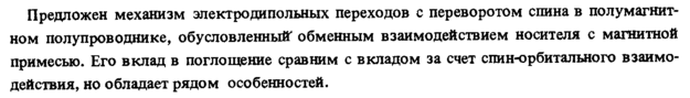 Предложен механизм электродипольных переходов с переворотом спина в полумагнитном полупроводнике, o6ycnoBneHHbrif обменным взаимодействием носителя с магнитной примесью. Его вклад в поглощение сравним с вкладом за счет спин-орбитального взаимодействия, но обладает рядом особенностей.