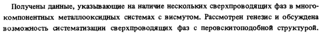 Получены данные, указывающие на наличие нескольких сверхпроводящих фаз в многокомпонентных металлооксидных системах с висмутом. Рассмотрен генезис и обсуждена возможность систематизации сверхпроводящих фаз с перовскитоподобной структурой.
