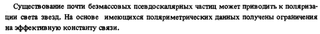 Существование почти безмассовых псевдоскалярных частиц может приводить к поляризации света звезд. На основе имеющихся поляриметрических данных получены ограничения на эффективную константу связи.