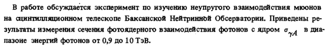 В работе обсуждается эксперимент по изучению неупругого взаимодействия мюонов на сцинтилляционном телескопе Баксанской Нейтринной Обсерватории. Приведены результаты измерения сечения фотоядерного взаимодействия фотонов с ядром в диапазоне энергий фотонов от 0,9 до 10 ТэВ.