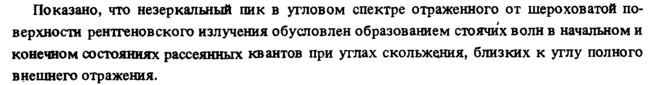 Показано, что незеркальный пик в угловом спектре отраженного от шероховатой поверхности рентгеновского излучения обусловлен образованием стоячих волн в начальном и конечном состояниях рассеянных квантов при углах скольжения, близких к углу полного внешнего отражения.