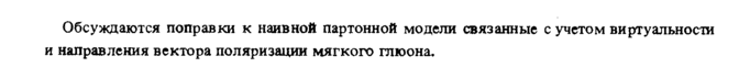 Обсуждаются поправки к наивной партонной модели связанные с учетом виртуальности и направления вектора поляризации мягкого глюона.