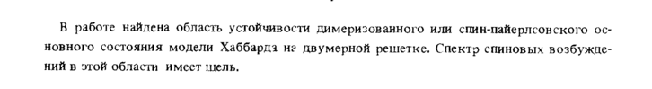 В работе найдена область устойчивости димеризованного или спин-пайерлсовского основного состояния модели Хаббарда н? двумерной решетке. Спектр спиновых возбуждений в этой области имеет щель.
