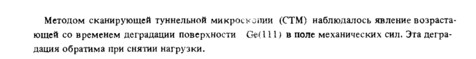 Методом сканирующей туннельной микроскопии (СТМ) наблюдалось явление возрастающей со временем деградации поверхности Gei111) в поле механических сил. Эта деградация обратима при снятии нагрузки.