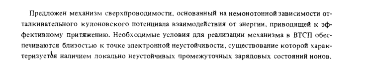 Предложен механизм сверхпроводимости, основанный на немонотонной зависимости от-талкивательного кулоновского потенциала взаимодействия от энергии, приводящей к эффективному притяжению. Необходимые условия для реализации механизма в ВТСП обеспечиваются близостью к точке электронной неустойчивости, существование которой характеризуется наличием локально неустойчивых промежуточных зарядовых состояний ионов.