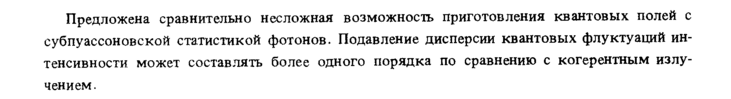 Предложена сравнительно несложная возможность приготовления квантовых полей с субпуассоновской статистикой фотонов. Подавление дисперсии квантовых флуктуаций интенсивности может составлять более одного порядка по сравнению с когерентным излучением.