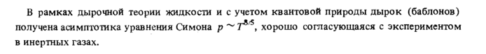 В рамках дырочной теории жидкости и с учетом квантовой природы дырок (баблонов) получена асимптотика уравнения Симона р^Г