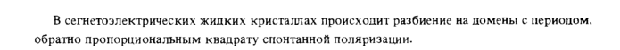 В сегнетоэлектрических жидких кристаллах происходит разбиение на домены с периодом, обратно пропорциональным квадрату спонтанной поляризации.