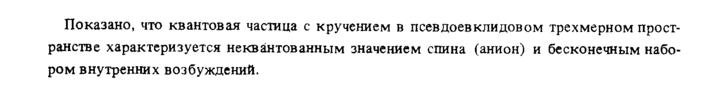 Показано, что квантовая частица с кручением в псевдоевклидовом трехмерном пространстве характеризуется неквантованным значением спина (анион) и бесконечным набором внутренних возбуждений.