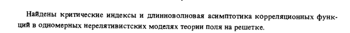 Найдены критические индексы и длинноволновая асимптотика корреляционных функций в одномерных нерелятивистских моделях теории поля на решетке.