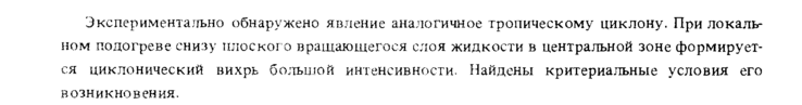 Возбуждение циклонического вихря или лабораторная модель тропического циклона
